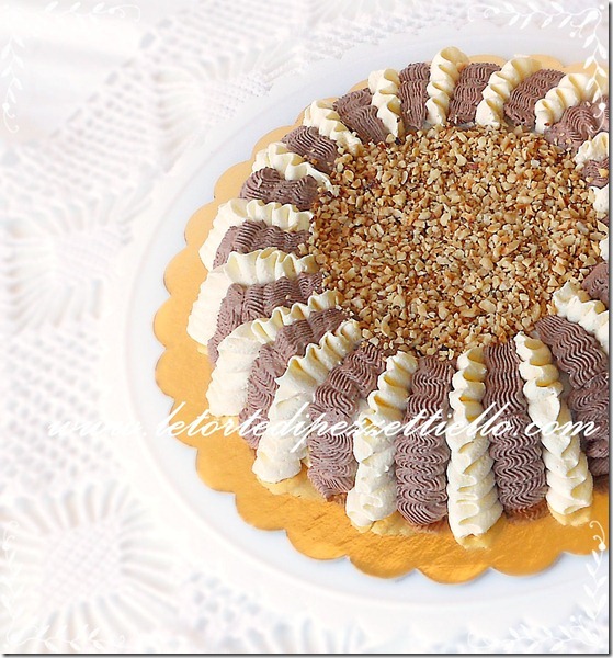 ha all’interno pan di spagna bagnato all’amaretto e nocciole.